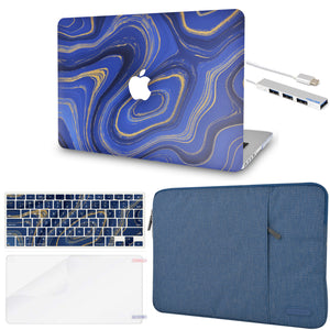 LuvCase Macbook Case - Color Collection - Purple Blue Swirl with Sleeve, Keyboard Cover, Screen Protector and USB Hub
