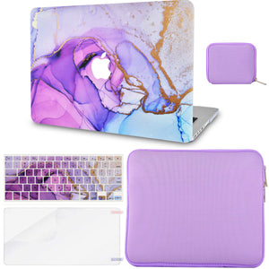LuvCase Macbook Case - Color Collection - Purple Blue Swirl with Slim Sleeve, Keyboard Cover, Screen Protector and Pouch