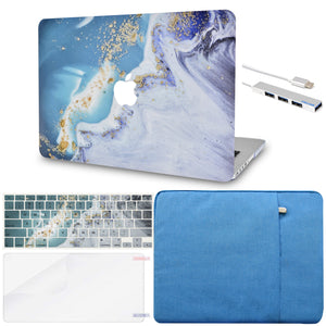 LuvCase Macbook Case - Color Collection - Light Blue Swirl with Matching Keyboard Cover, Screen Protector ,Sleeve ,USB Hub