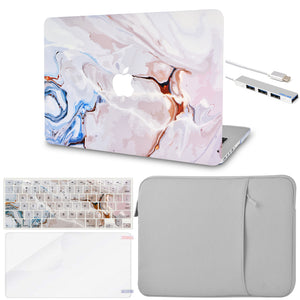 LuvCase Macbook Case - Color Collection - Ivory Swirl with Matching Keyboard Cover, Screen Protector ,Sleeve ,USB Hub