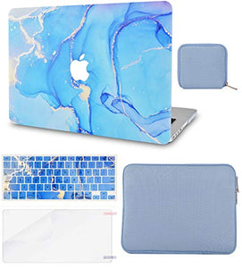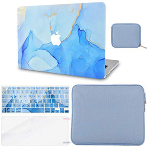 LuvCase MacBook Case - Color Collection - Blue White Swirl with Slim Sleeve, Keyboard Cover, Screen Protector and Pouch