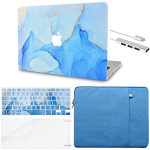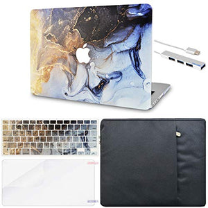 LuvCase Macbook Case - Color Collection - Blue Gold Swirl with Sleeve, Keyboard Cover, Screen Protector and USB Hub