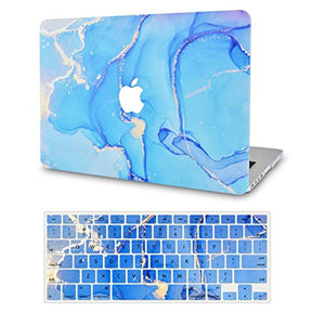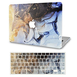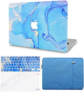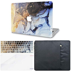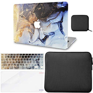 LuvCase MacBook Case - Color Collection - Blue Gold Swirl with Slim Sleeve, Keyboard Cover, Screen Protector and Pouch