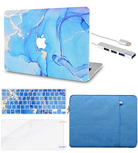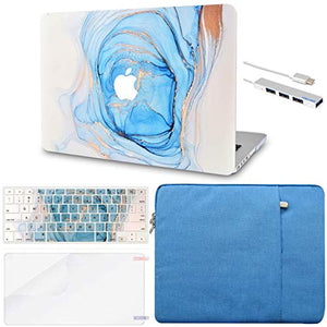 LuvCase Macbook Case - Color Collection - Blue Swirl with Sleeve, Keyboard Cover, Screen Protector and USB Hub