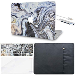 LuvCase MacBook Case - Color Collection - Black Gold Swirl with Sleeve, Keyboard Cover, Screen Protector and USB Hub