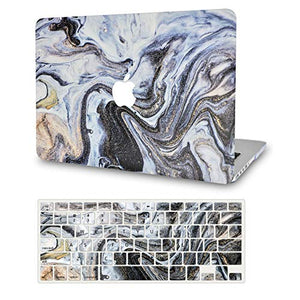 LuvCase MacBook Case - Color Collection - Black Gold Swirl with Slim Sleeve, Keyboard Cover, Screen Protector and Pouch
