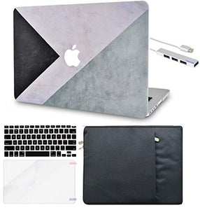 LuvCase Macbook Case 5 in 1 Bundle - Color Collection - Black White Grey with Sleeve, Keyboard Cover, Screen Protector and USB Hub 3.0