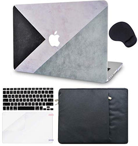 LuvCase Macbook Case 5 in 1 Bundle - Color Collection - Black White Grey with Sleeve, Keyboard Cover, Screen Protector and Mouse Pad