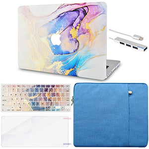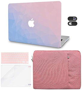 LuvCase Macbook Case 5 in 1 Bundle - Color Collection - Ombre Pink Blue with Sleeve, Keyboard Cover, Screen Protector and Webcam Cover