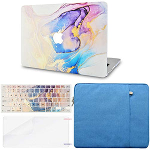 LuvCase Macbook Case - Color Collection - Beige Blue Swirl with Slim Sleeve, Keyboard Cover, Screen Protector and Pouch